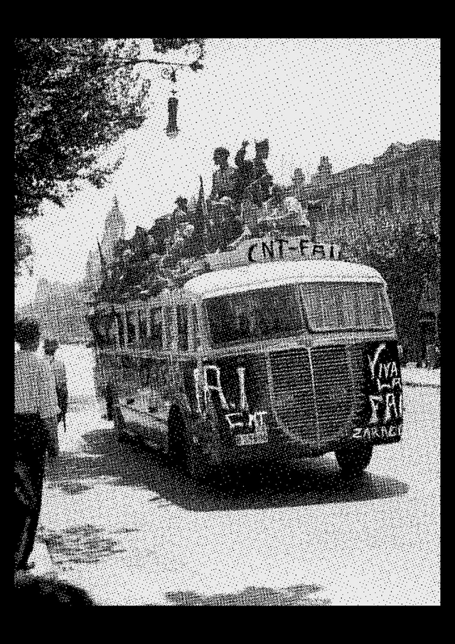 Fotografie aus der Spanischen Revolution 1936-1939, in der die anarchistische Gewerkschaftsbewegung u.a. den ÖPNV kollektivierte.