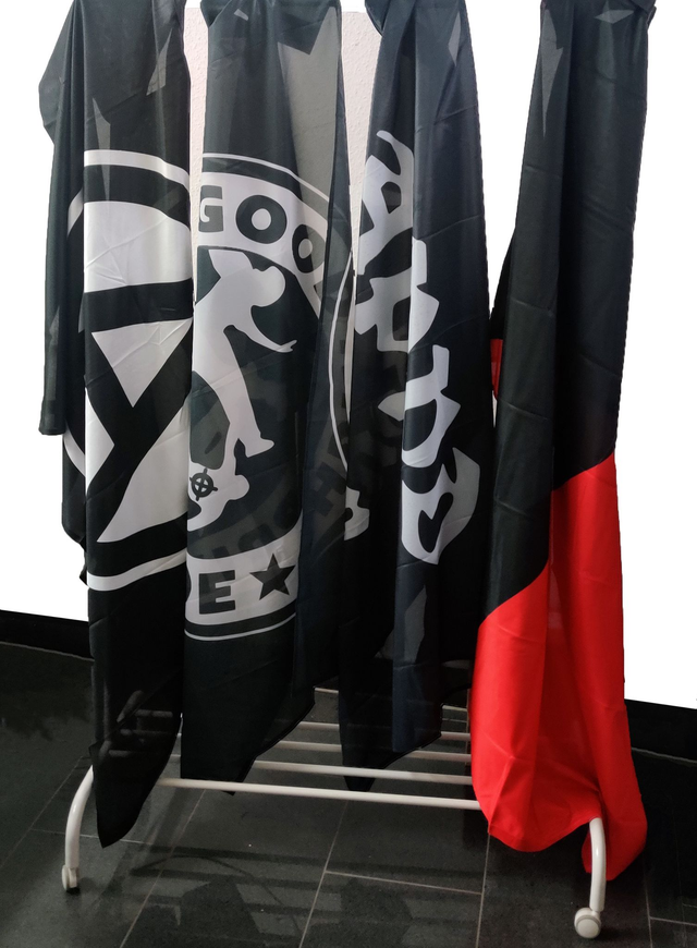 100 x 150 cm; Stabflagge - ringsum gesäumt, mastseitig mit Hohlsaum für 25mm Stab